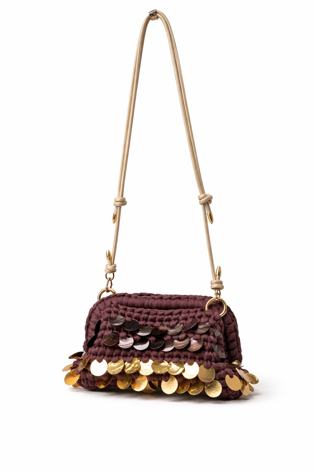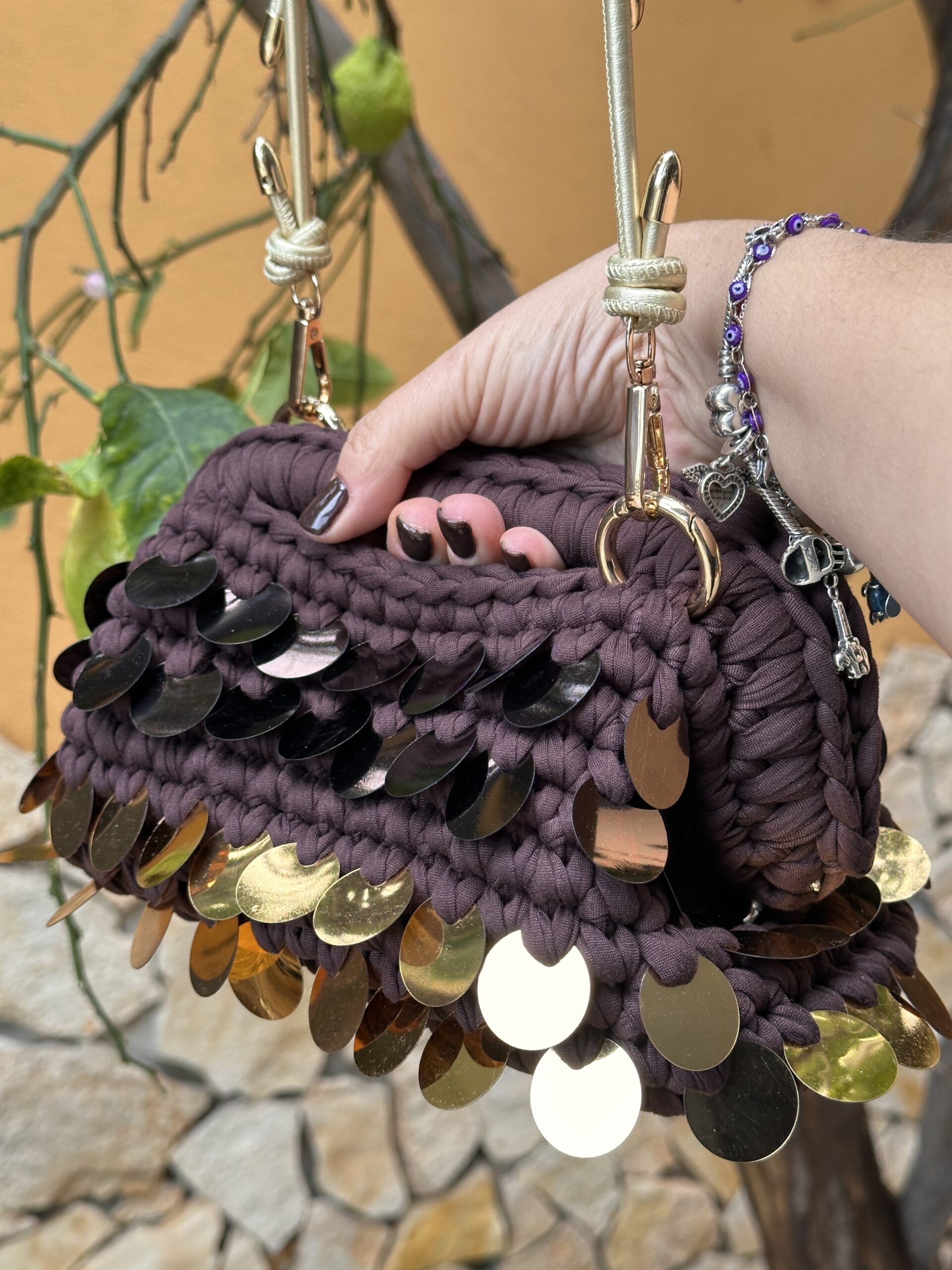 Questa splendida pochette Brown all’uncinetto, realizzata a mano, è pensata per non passare inosservata, grazie alle vivaci paillettes Brown che brillano ad ogni movimento e catturano la luce in modo meraviglioso.