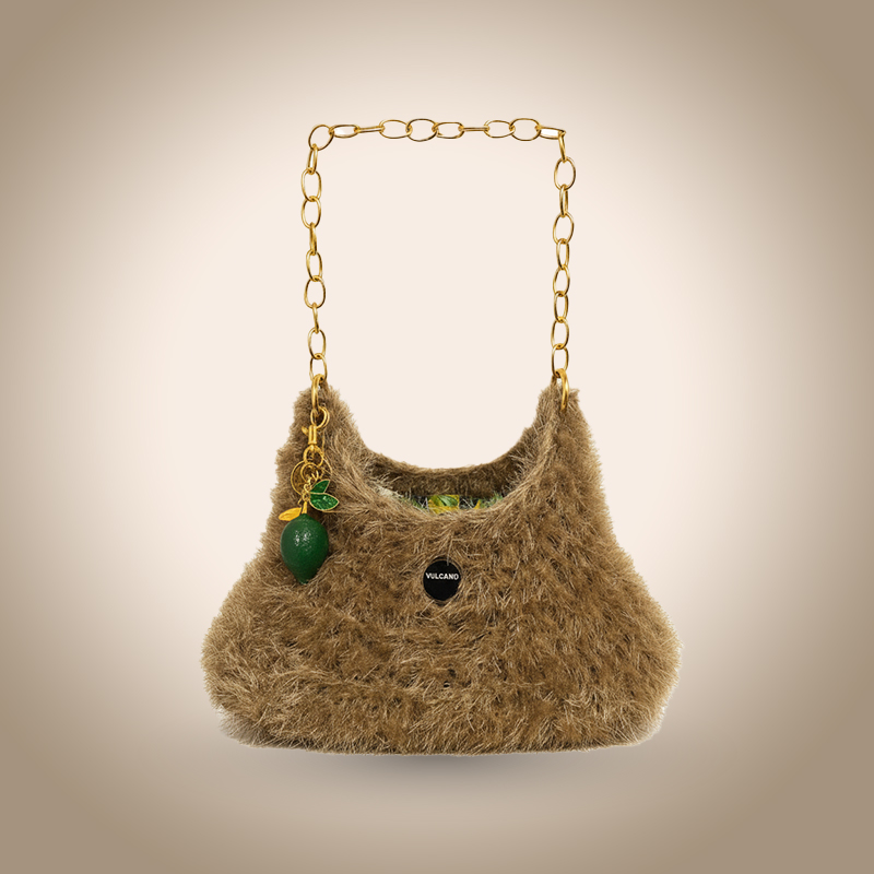 Luce di Sicilia combines the soft embrace of faux fur with the vibrant soul of the island. Inside, a Sicilian lemon print bursts with Mediterranean freshness, while a golden chain adds a touch of modern elegance.