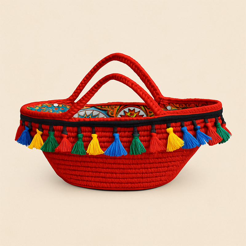 Una reinterpretazione contemporanea della tradizionale coffa siciliana, che unisce artigianalità, tradizione ed eleganza moderna.